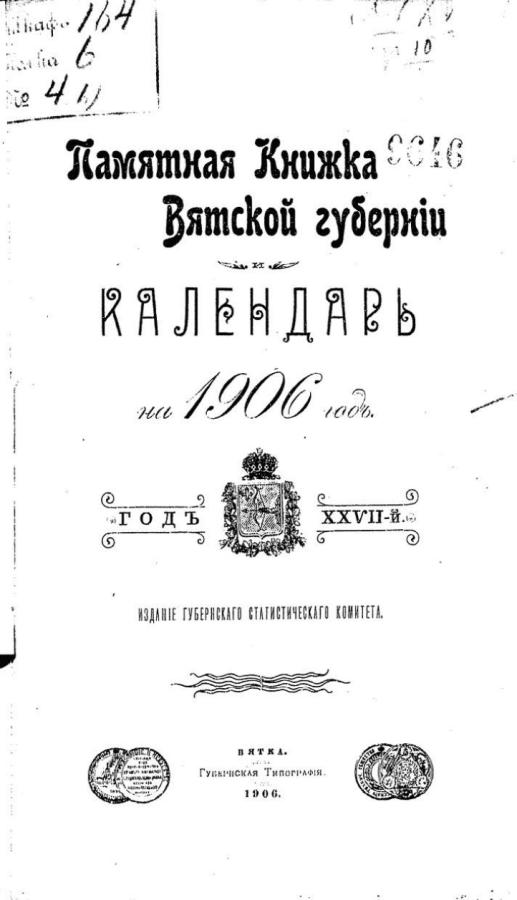 Памятная книжка Вятской губернии и календарь на 1906 год