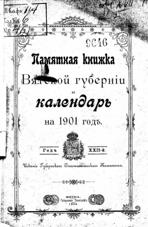 Памятная книжка Вятской губернии и календарь на 1901 год