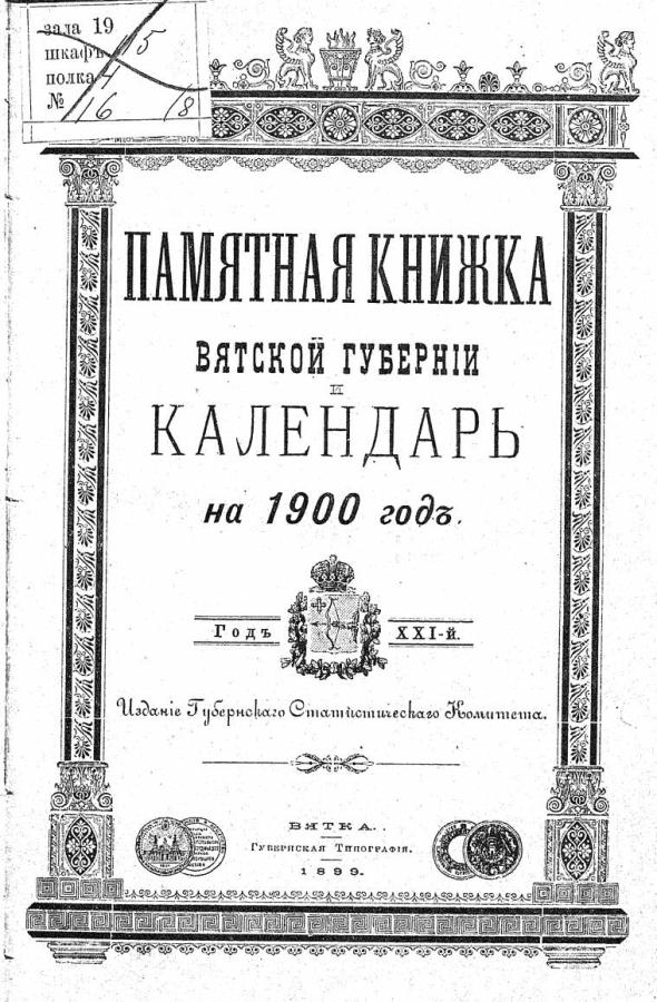 Памятная книжка Вятской губернии и календарь на 1900 год