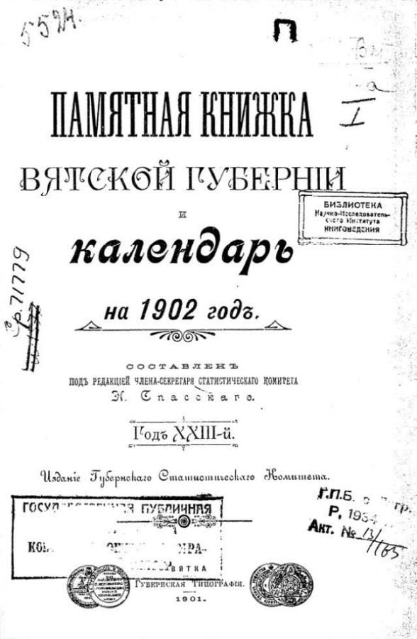 Памятная книжка Вятской губернии и календарь на 1902 год