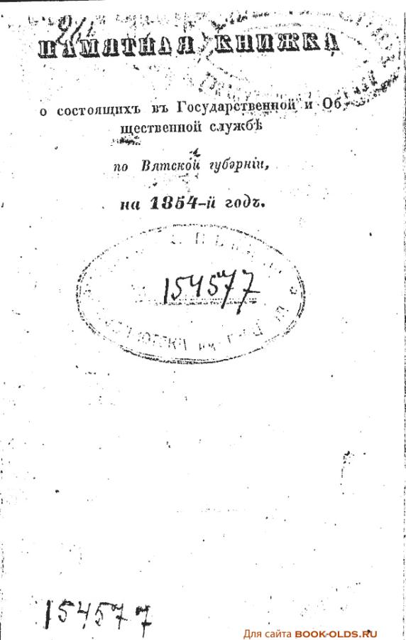 Памятная книжка о состоящих в Государственной и Общественной службе по Вятской губернии на 1854 год