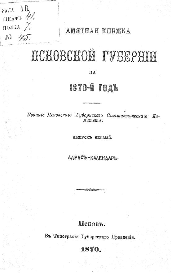 Памятная книжка Псковской губернии на 1905 и 1906 г.