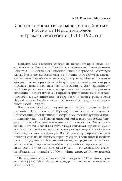 Западные и южные славяне-генштабисты в России от Первой мировой к Гражданской войне (1914-1922 гг.)