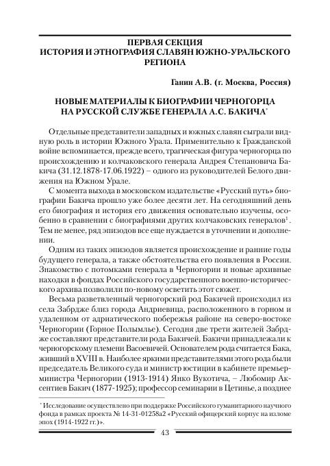 Новые материалы к биографии черногорца на русской службе генерала А.С. Бакича