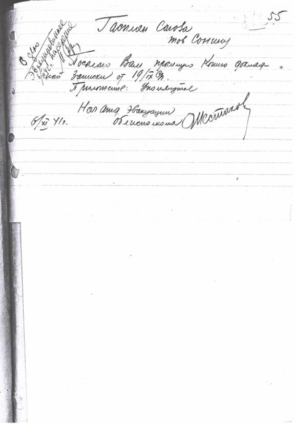Докладная записка о работе переселенческого отдела при Куйбышевском Облисполкоме. 19 сентября 1941 г.