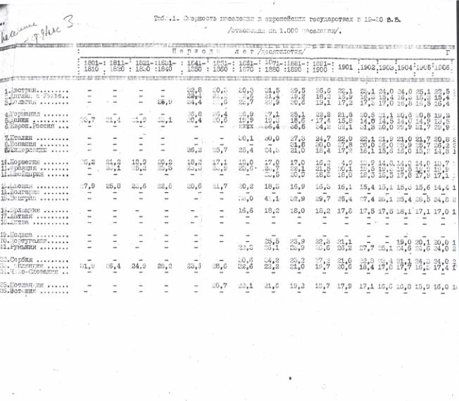 Таблица смертности населения в европейских государствах в 19-20 веке. 1934 г.
