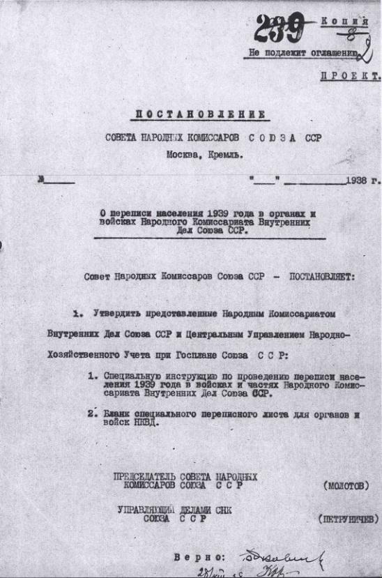 Инструкция по проведению переписи населения 1939 г. в органах, войсках и частях НКВД СССР