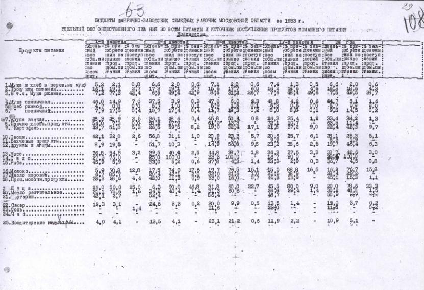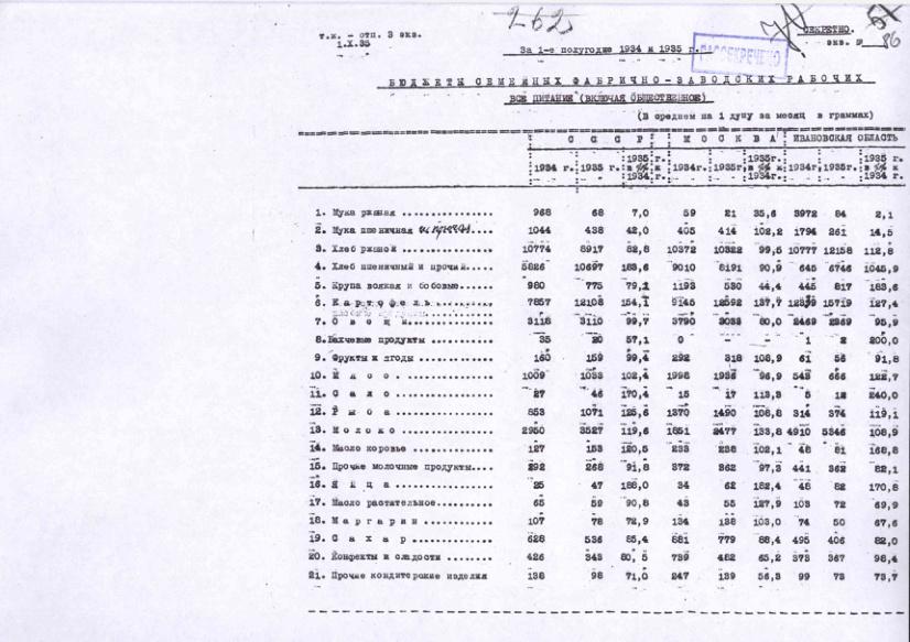Бюджеты фабрично-заводских семейных рабочих. Питание за 1-ое полугодие 1934-1935 гг.