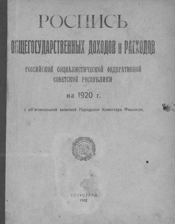 Роспись общегосударственных доходов и расходов РСФСР на 1920 г.