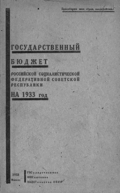 Государственный бюджет РСФСР на 1933 г.