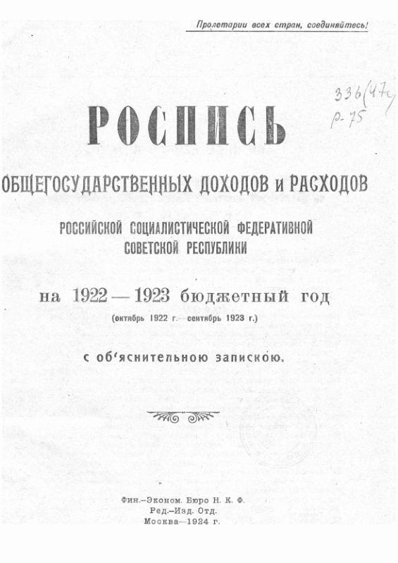 Роспись общегосударственных доходов и расходов РСФСР на окт. 1922 г. - сент. 1923 г.