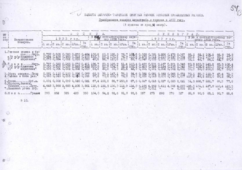 Бюджеты фабрично-заводских семейных рабочих Москвы и Ленинграда. Приобретение товаров ширпотреба и топлива в 1932-1933 гг.
