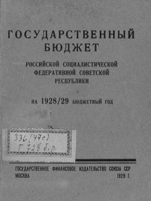 Государственный бюджет РСФСР на 1928-1929 г.г.