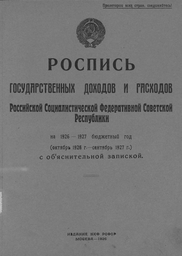 Роспись общегосударственных доходов и расходов РСФСР на окт. 1926 - сент. 1927 г.г.