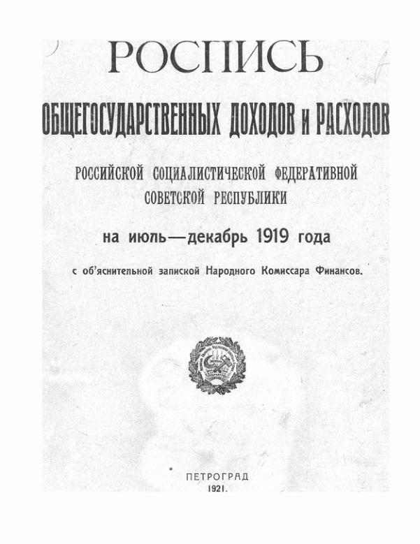Роспись общегосударственных доходов и расходов РСФСР на июль-декабрь 1919 г.