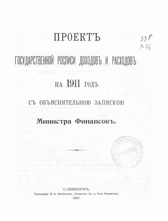 Проект государственной росписи доходов и расходов на 1911 г.