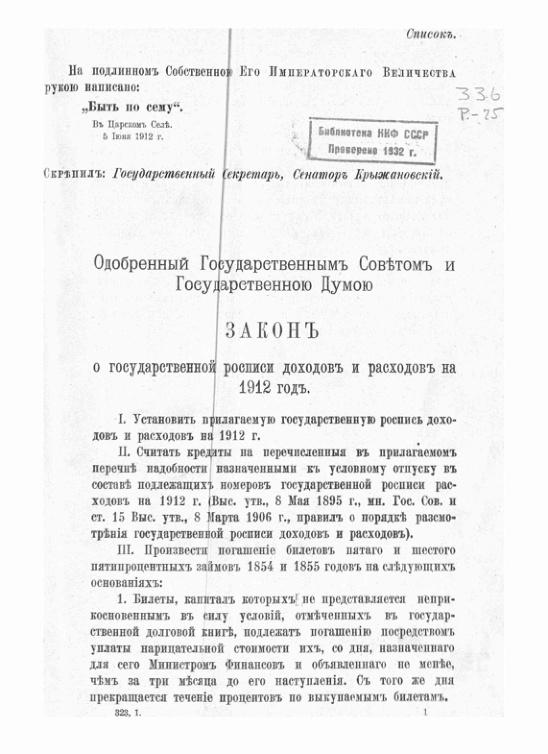 Проект государственной росписи доходов и расходов на 1912 г.