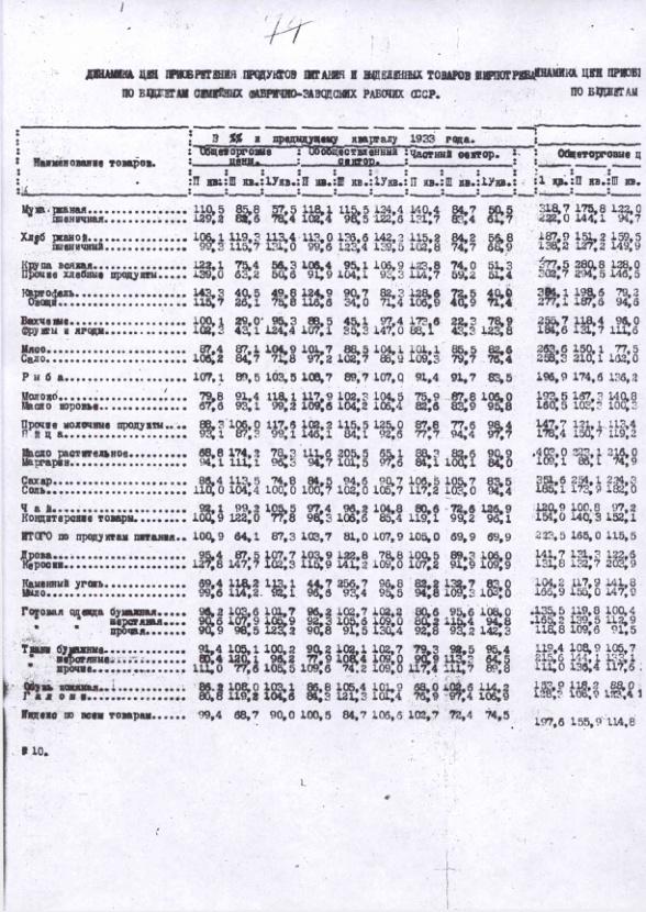 Динамика цен приобретения продуктов питания и товаров ширпотреба по бюджетам семейных рабочих СССР в 1932-1933 гг.