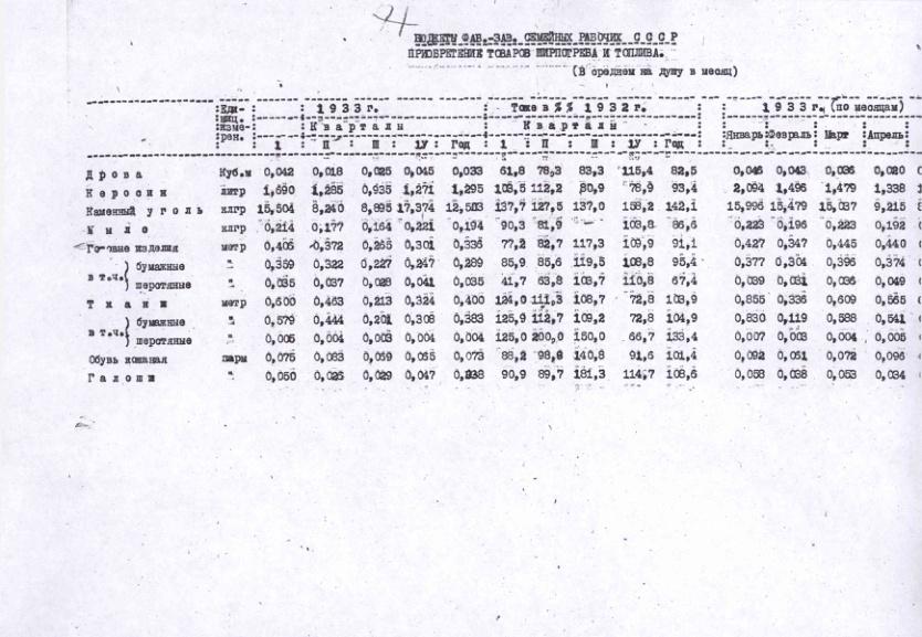 Бюджеты фабрично-заводских семейных рабочих промышленности СССР. Приобретение товаров ширпотреба и топлива в 1932-1933 гг.