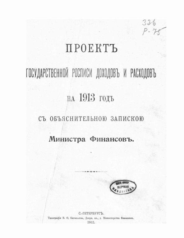 Проект государственной росписи доходов и расходов на 1913 г.