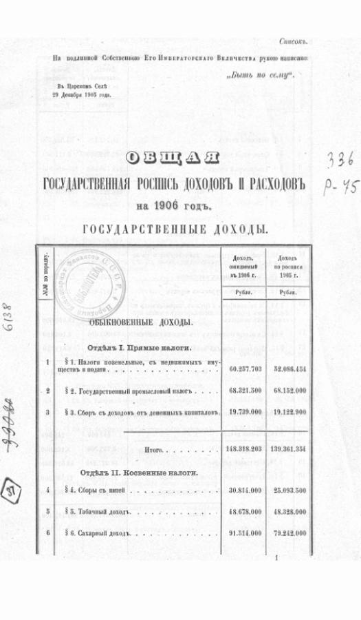 Общая государственная роспись доходов и расходов на 1906 г.