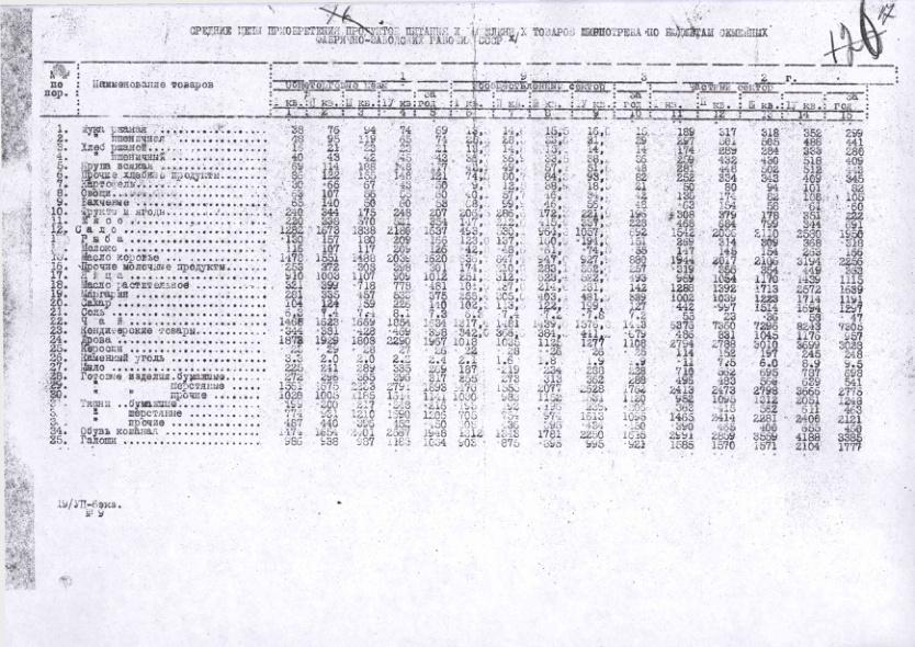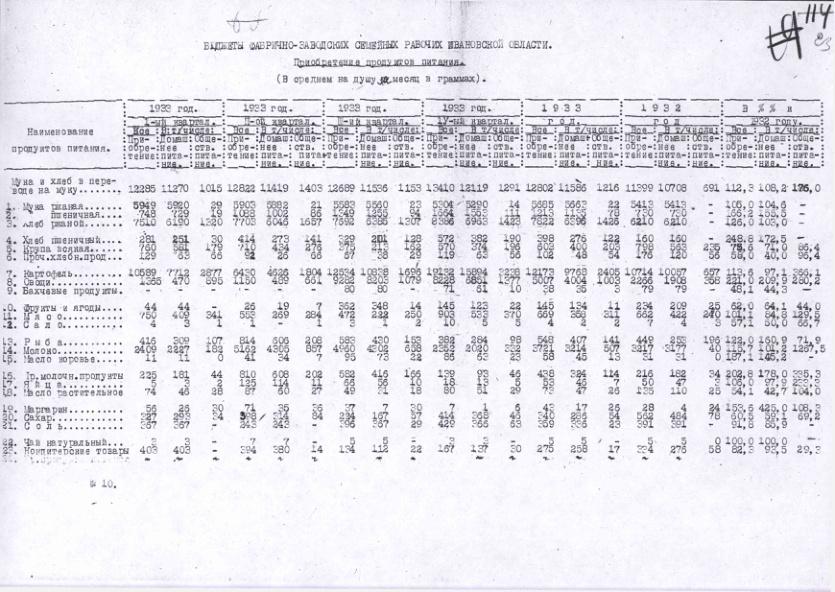 Бюджеты фабрично-заводских семейных рабочих Ивановской области. Приобретение продуктов питания в 1932-1933 гг.
