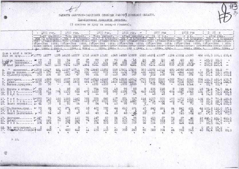 Бюджеты фабрично-заводских семейных рабочих Донецкой области. Приобретение продуктов питания в 1932-1933 гг.