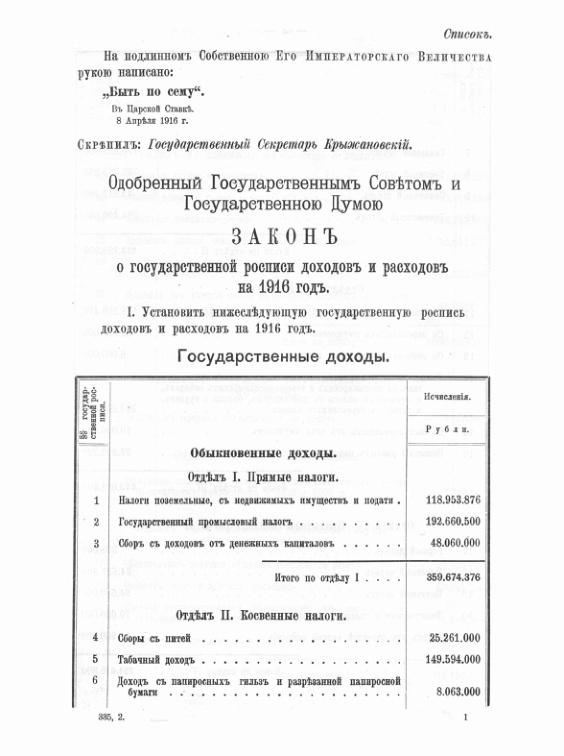 Закон о государственной росписи доходов и расходов на 1916 г.
