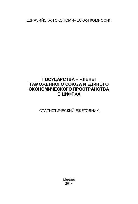 Государства-члены ТС и ЕЭП в цифрах 2014. Статистический ежегодник