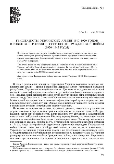 Генштабисты украинских армий 1917-1920 годов в Советской России и СССР после Гражданской войны (1920-1945 годы)