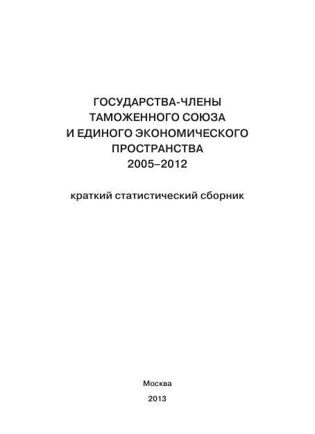 Государства-члены ТС и ЕЭП 2005-2012. Краткий статистический сборник