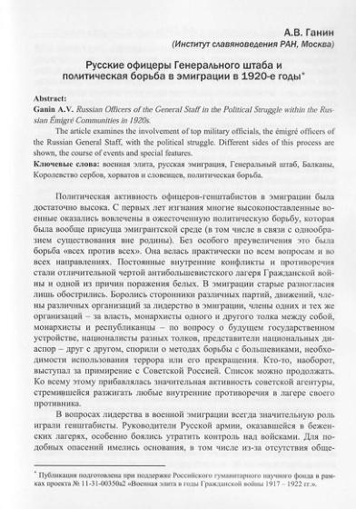Русские офицеры Генерального штаба и политическая борьба в эмиграции в 1920-е годы
