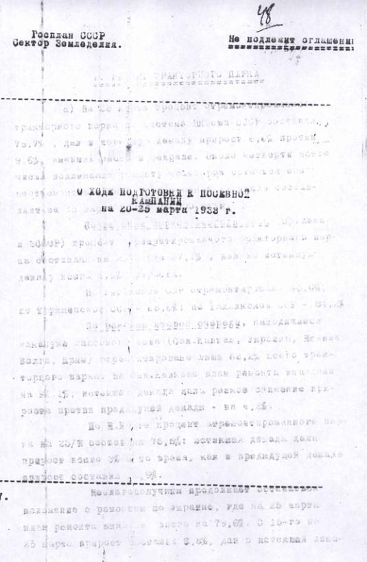 Сводка о ходе подготовки весенней посевной компании 1933 г. на 20-25/III-1933 г.