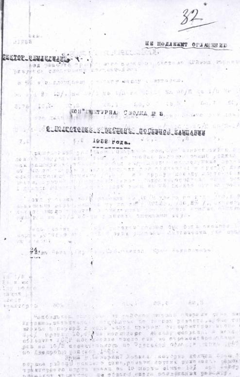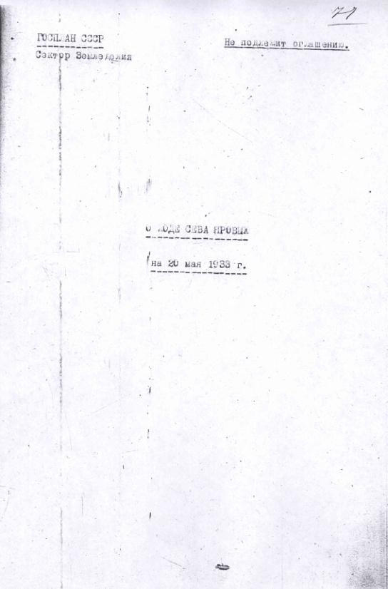 Сводка о ходе сева яровых 20 мая 1933 г.
