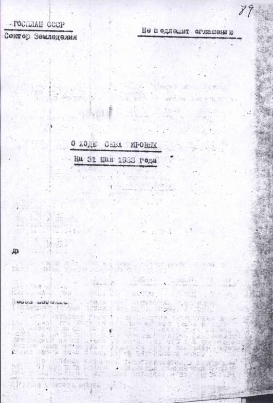 Сводка о ходе сева яровых 31 мая 1933 г.