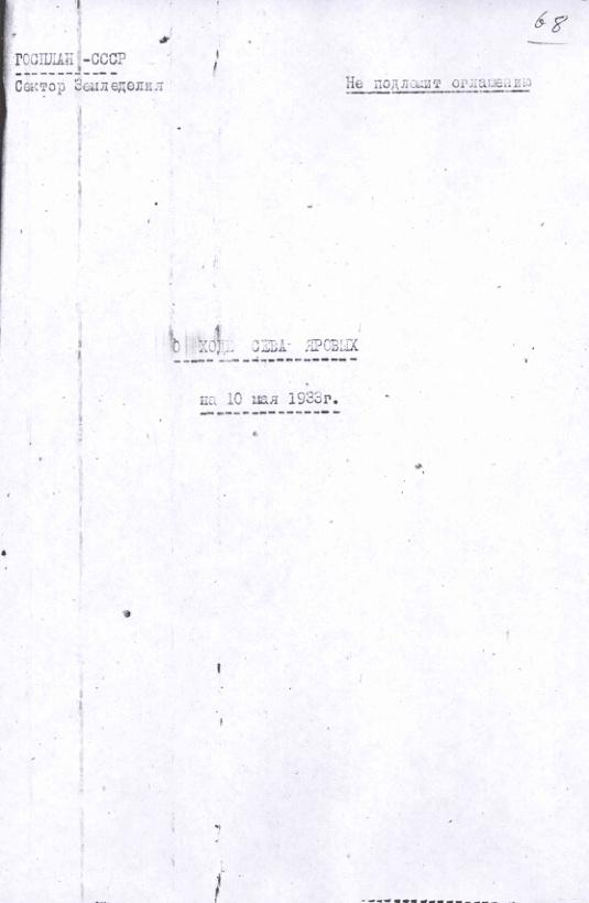 Сводка о ходе сева яровых 10 мая 1933 г.