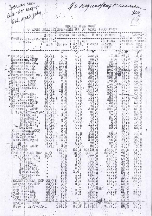 Сводки НКЗ СССР о ходе коллективизации в период 1 февраля по 1 сентября 1933 года.