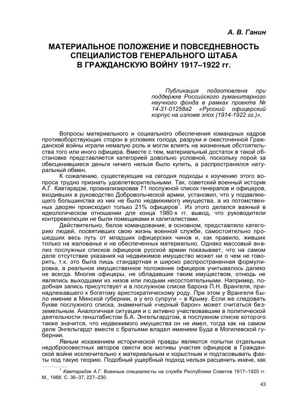 Материальное положение и повседневность специалистов Генерального штаба в Гражданскую войну 1917-1922 гг.