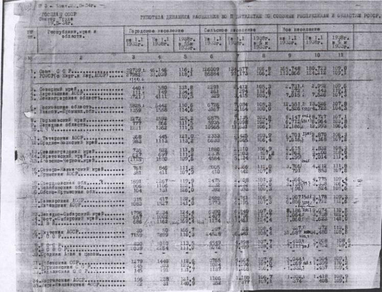 Предварительные расчеты численности населения СССР на вторую пятилетку произведенные сектором труда Госплана СССР в 1934 году.