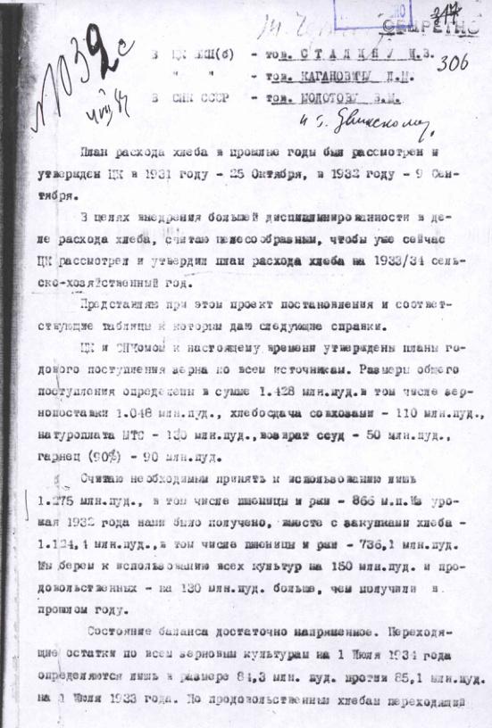 Постановление ЦК ВКП(б) и СНК СССР. Об обязательной поставке зерна государству колхозами и единоличными хозяйствами из урожая 1933 года на основе закона от 19 января 1933 г.