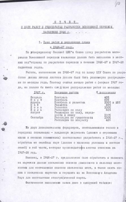 Отчет о ходе работ и результатах разработки Всесоюзной переписи населения 1926 г.