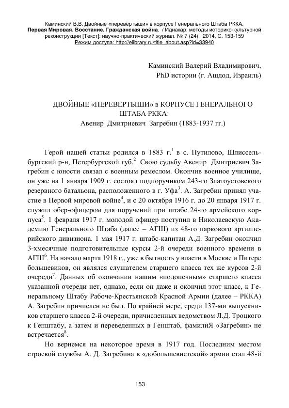 Двойные «перевертыши» в корпусе генерального штаба РККА: Авенир Дмитриевич Загребин (1883-1937 гг.)
