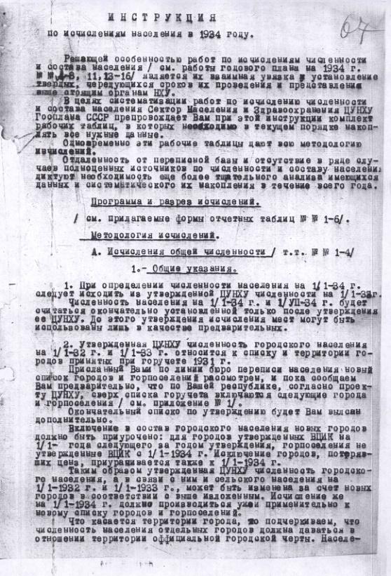 Инструкция ЦУНХУ по исчислению населения СССР в 1934 году.
