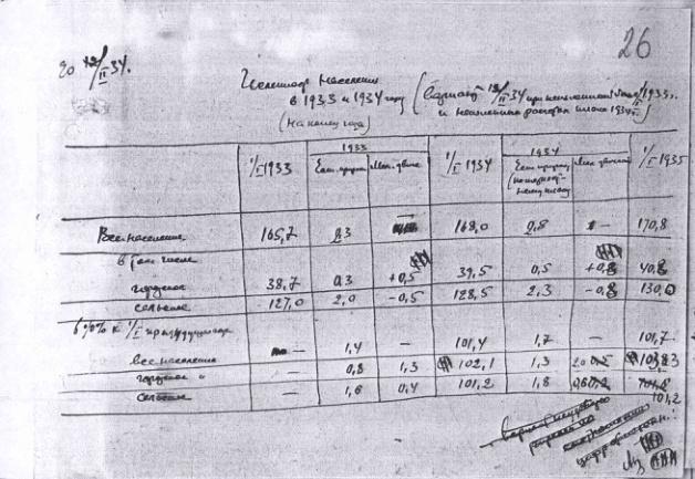 Вариант предварительного расчета Госплана динамики населения СССР с 1933 по 1935 гг. 2 февраля 1934 г.
