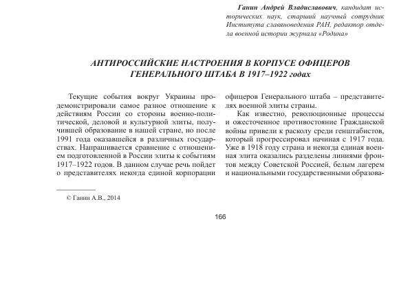 Антироссийские настроения в корпусе офицеров Генерального штаба в 1917-1922 годах