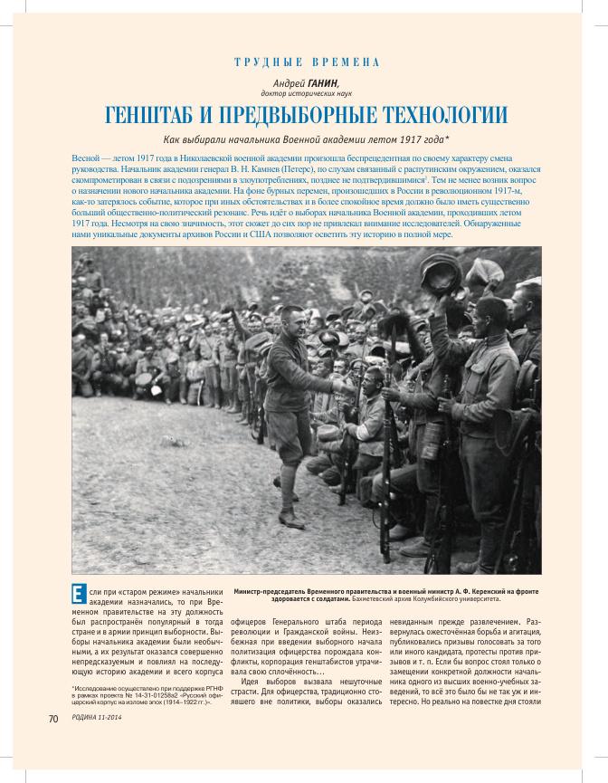 Генштаб и предвыборные технологии. Как выбирали начальника Военной академии летом 1917 года