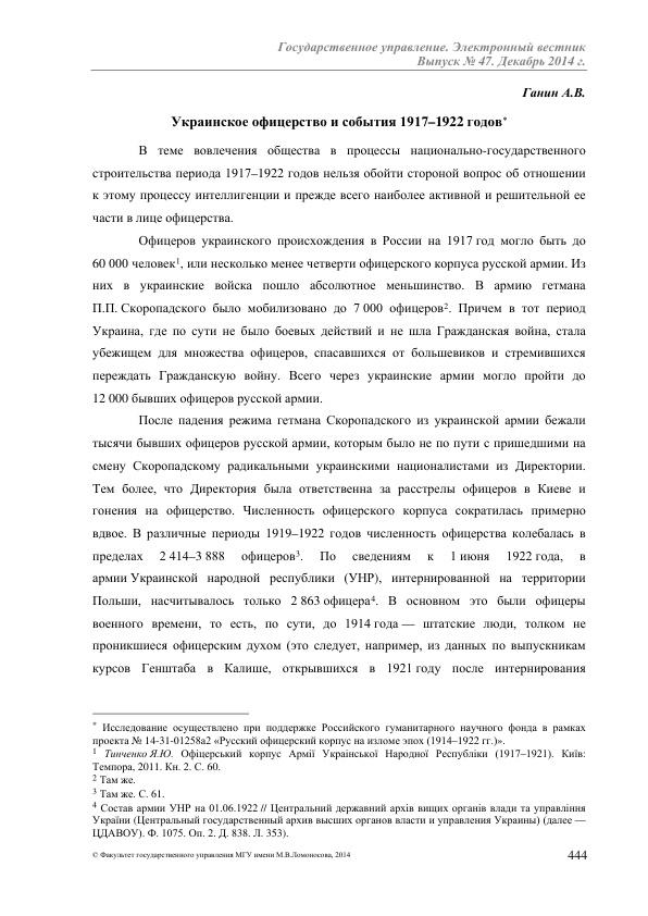 Доклад председателя РВС 11-й отдельной армии К.А. Механошина о положении армии в апреле 1919 г. Публ. и примечания А.В. Ганина