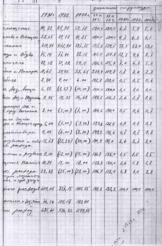 Бюджеты городского населения в 1928, 1931-1933 гг.