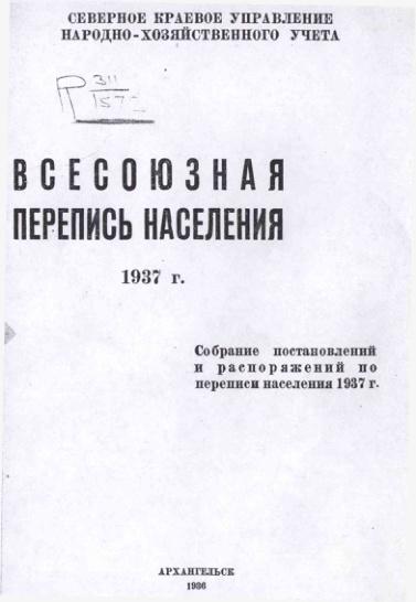 Всесоюзная перепись населения 1937 года. Собрание постановлений и распоряжений по переписи населения 1937 г.