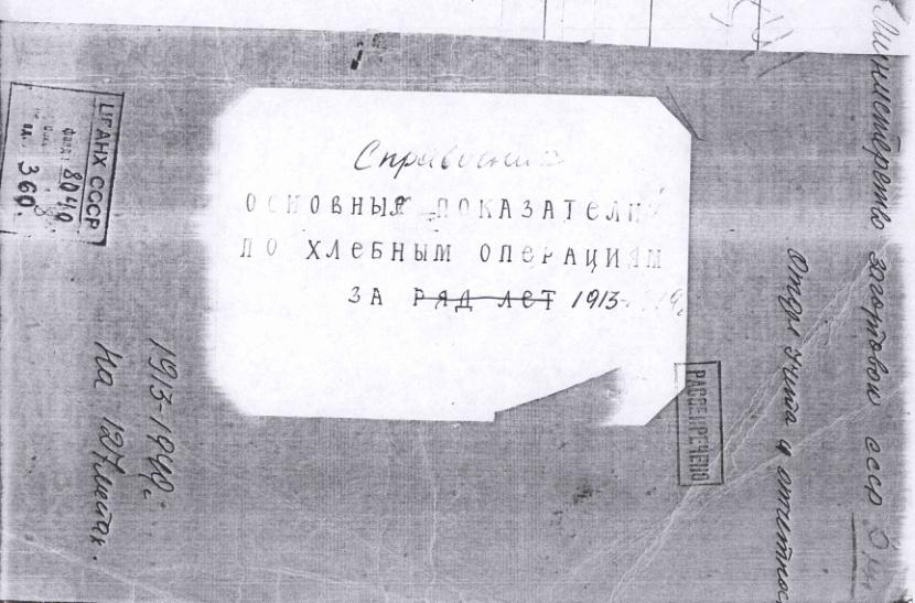 Справочник основных показателей по хлебным операциям за 1913-1949 гг.